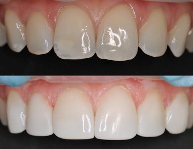 Once the Instant veneers are placed both you and your dentist will work together on creating your bespoke look, as the material used for Instant Veneers is so versatile it can be adjusted at any point, meaning you can have exactly what you're looking for. This also means that if anything were to happen to your veneers after placement they can be repaired, as opposed to conventional porcelain which you would need to have the whole veneer replaced, even for a small chip.